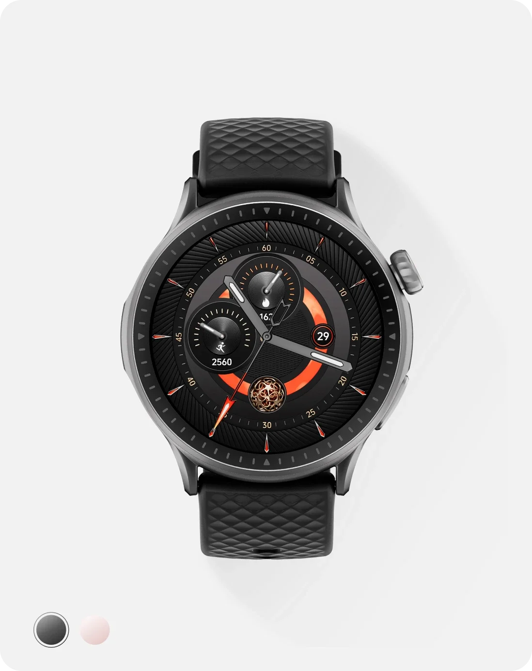 Maskulines Premium-Design: Wähle aus Schwarz, Marineblau, Rosa oder Gletscher Weiß und passe deine Chronos GTR3 mit Silikon perfekt an deinen Stil an. Das hochwertige Metallgehäuse und das kratzfeste Display sorgen für eine edle und langlebige Optik.